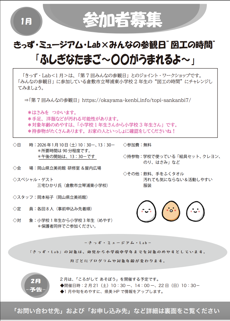 「きっず・Lab<1月>は、「第7回みんなの参観日」とのジョイント・ワークショップです。
